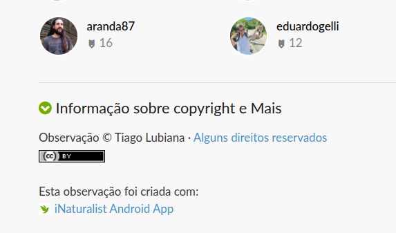 Por isso, o iNaturalist apresenta uma série de possibilidades de licenciamento das fotos e das observações.