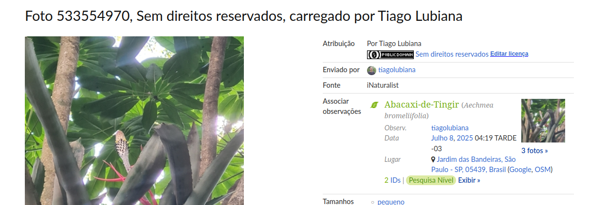 Dessa forma, fotos diferentes de uma mesma observação podem ter licenças específicas, tudo para dar às pessoas o máximo de controle para expressar como elas querem que as imagens sejam reutilizadas!